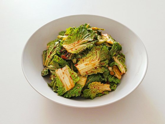 - 신선한 봄동을 잘게 썰어 준비합니다.
