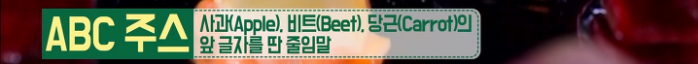 ABC쥬스는 사과(Apple). 비트(Beet), 당근(Carrot)의 앞 글자를 딴 줄임말이에요.