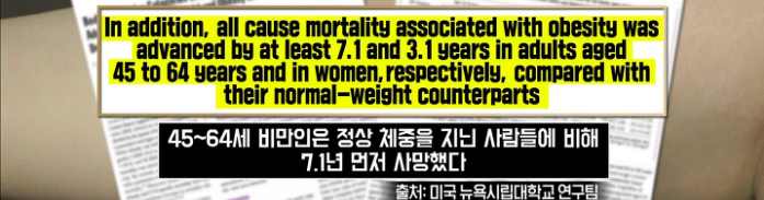 실제로 45세~64세 비만인은 정상 체중을 지닌 사람들에 비해서 7.1년 먼저 사망한다는 연구 결과가 있어요.