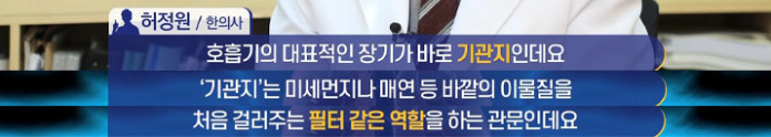 기관지는 미세먼지나 매연 등 바깥의 이물질을 처음 걸러주는 필터 같은 역할을 하는 관문인데요.