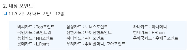 ■ 계좌 입금이 가능한 카드사와 대표 포인트 확인