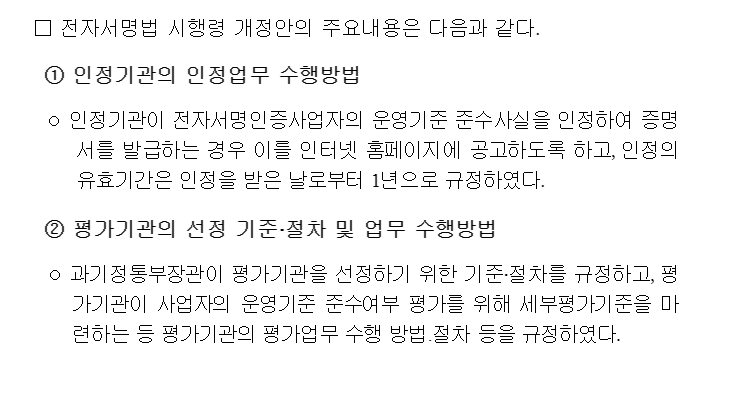 전자서명법 시행령 개정안을 보시면 신기술을 도입해 민간 전자서명을 활성화 한다는 내용입니다. 하지만 자세히 읽어보아도 기존 공인인증서는 그럼 어떻게 되는 건지 이 내용만으로는 자세히 알 수가 없어서 당황하실 텐데요. 지금부터 같이 살펴볼게요.