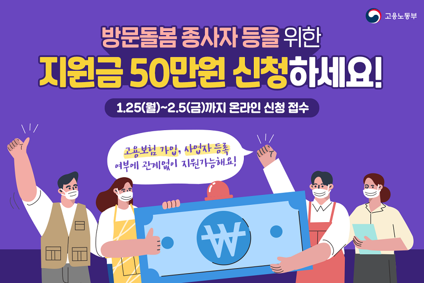방문돌봄 종사자들을 위한 지원금 50만원을 신청하세요!