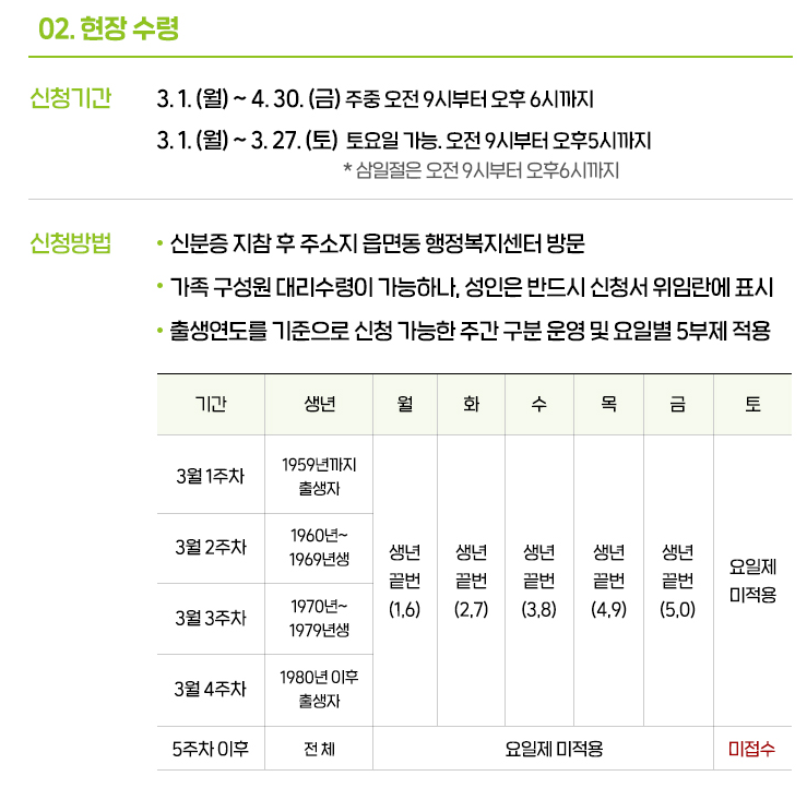 신청방법: 신분증 지참 후 주소지 읍면동 행정복지센터 방문