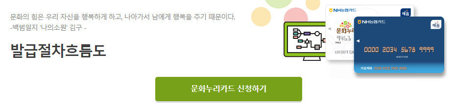 문화의 힘은 우리 자신을 행복하게 하고, 나아가서 남에게 행복을 주기 때문이다.-백범일지 '나의소원' 김구 - 문화누리카드란? 문화누리카드 신청하기 1문화누리카드란? 문화누리카드는 삶의