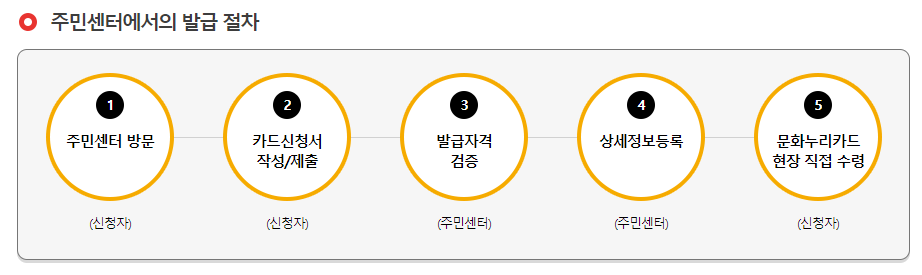 주민센터에서 직접 방문해서 신청하는 방법입니다. 방문 신청시에는 현장에서 카드를 수령해 바로 사용이 가능합니다.