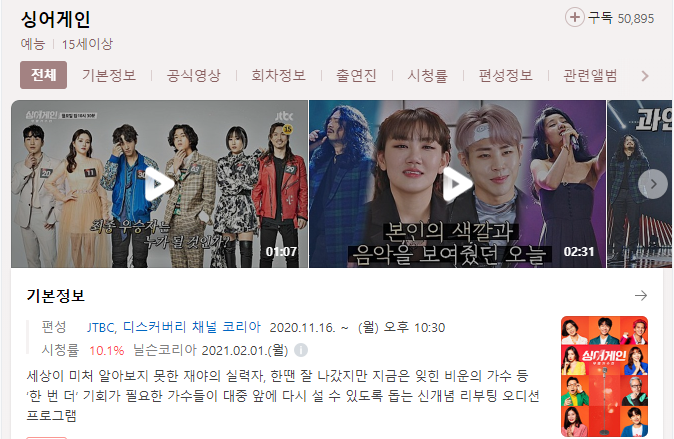 싱어게인은 2월 8일(월) 밤 10시 30분에 최종회를 진행합니다. 마지막 주인공은 누가될까요?