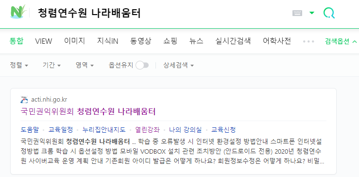 청렴연수원 나라배움터로 접속해주세요. 네이버에 검색하셔도 가장 위에 보일 거예요.