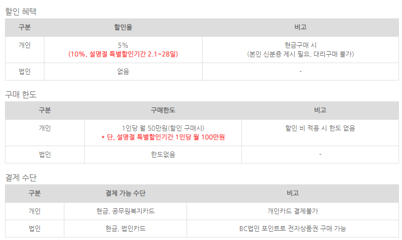 지류 상품권은 2월 말일까지, 모바일은 올해 내내 10% 할인을 진행한다고 합니다.