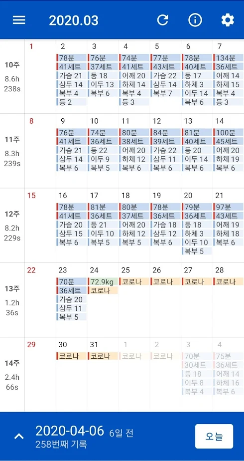 헬린이들의 필수 어플로 알려진 바디 캘린더는 그날의 운동 내용을 기록하는 어플입니다. 아무 기준 없이 운동을 하면 매번 같은 강도로 운동을 할 확률이 높습니다. 하지만 그날그날 운동한 내용을 기록하게 되면 목표를 만들 수 있고 목표 달성을 위해 꾸준히 운동을 하는 원동력이 됩니다. 보디 캘린더는 400가지가 넘는 다양한 운동을 기록할 수 있어 날짜와 요일별 운동 부위를 한눈에 확인할 수 있어 이전 기록과 비교해 얼마나 향상됐는지 알 수 있습니다. 운동 기록에 꼭 필요한 것만 단순하고 깔끔하게 구성되어 있어 편리하고 효율적으로 운동을 계속할 수 있습니다.